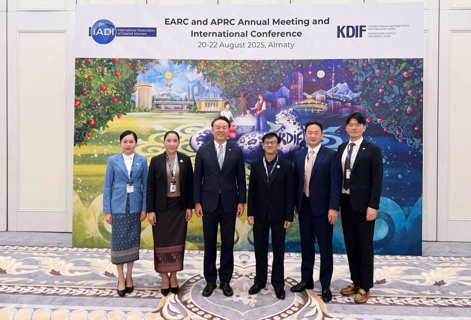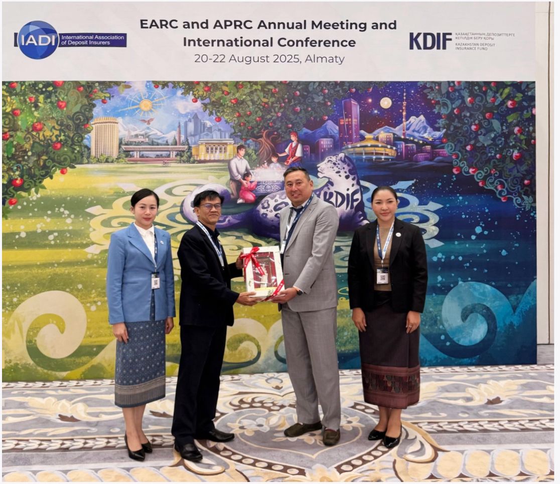 ໃນລະຫວ່າງວັນທີ 20 ຫາ 22 ສິງຫາ 2025, ຄະນະຜູ້ແທນຈາກສໍານັກງານປົກປ້ອງເງິນຝາກ (ສປງ) ແລະ ຄະນະຜູ້ແທນຈາກ 24 ປະເທດ ໄດ້ເຂົ້າຮ່ວມກອງປະຊຸມຂອງຄະນະກໍາມະການປະຈໍາພາກພື້ນອາຊີ-ເອີຣົບ ແລະ ອາຊີ-ປາຊີຟິກ ຂອງສະມາຄົມປະກັນໄພເງິນຝາກສາກົນ (IADI-EARC and APRC Meeting) ແລະ ກອງປະຊຸມສາກົນ ພາຍໃຕ້ຫົວຂໍ້ “ບາດກ້າວສູ່ຍຸກດິຈິຕອນ: ວາງແນວທາງອານາຄົດຂອງລະບົບປະກັນໄພເງິນຝາກ” (Navigating Digital Frontiers: Charting the Future of Deposit Insurance) ໂດຍການເປັນເຈົ້າພາບ ຂອງກອງທຶນປະກັນໄພເງິນຝາກກາຊັກສະຖານ (Kazakhstan Deposit Insurance Fund ຫຼື KDIF) ຮ່ວມກັບ ສະມາຄົມປະກັນໄພເງິນຝາກສາກົນ (IADI) ຊຶ່ງໄດ້ຈັດຂຶ້ນຢູ່ທີ່ເມືອງ ອານມາຕີ (Almaty), ປະເທດ ກາຊັກສະຖານ (Kazakhstan).